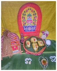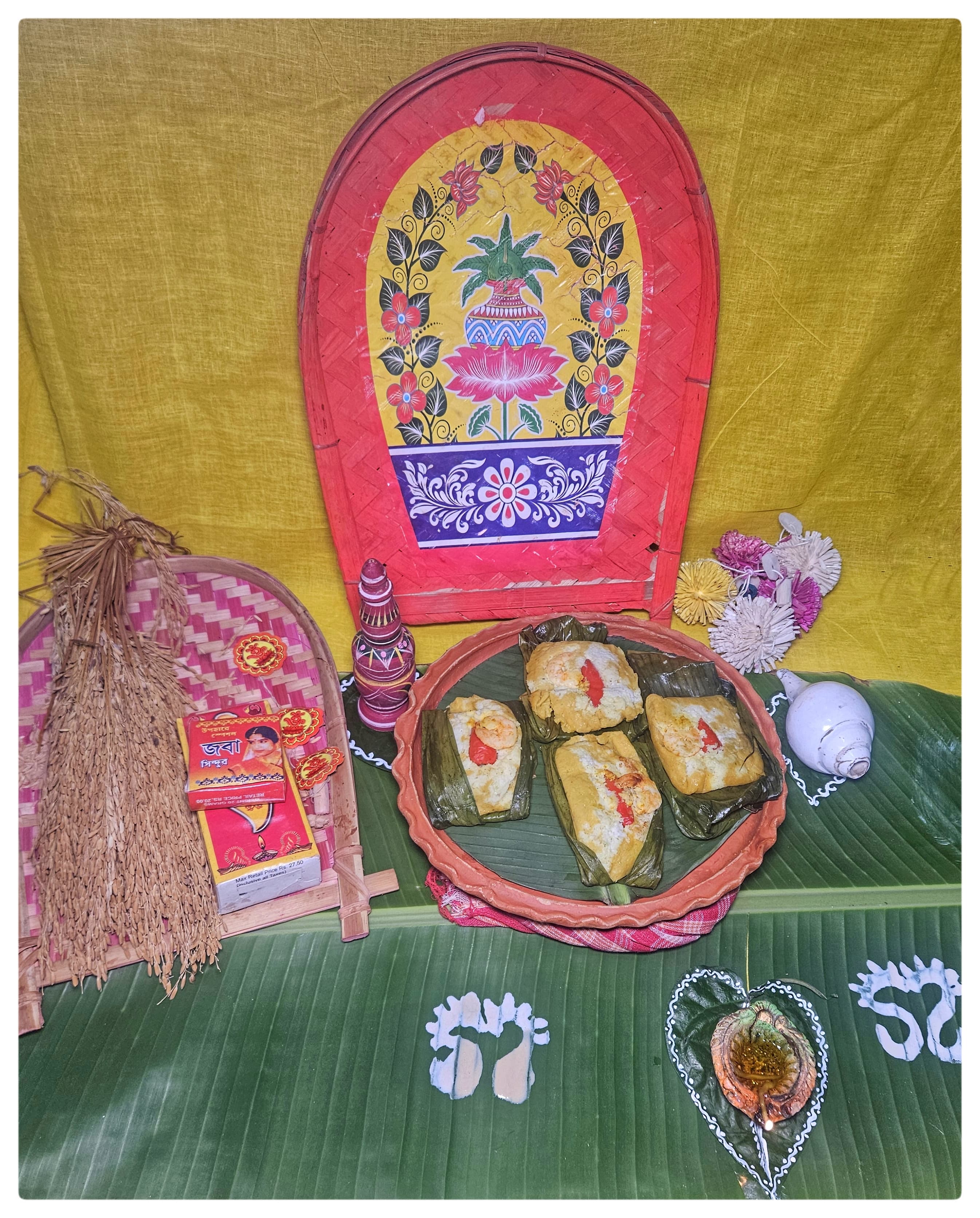 এবার একটা করে কলাপাতা নিয়ে তেল ব্রাশ করে মুগডালের মিশ্রণ ২চামচ করে দিয়ে অল্প করে নারকেল কোরা ছড়িয়ে ওপরে একটা করে চিংড়ি মাছ ও পাকা লঙ্কা লম্বা করে চিরে নিয়ে হাফ দিয়ে কলাপাতা মুড়ে নিতে হবে। এইভাবে সবকটা গড়ে নিতে হবে।