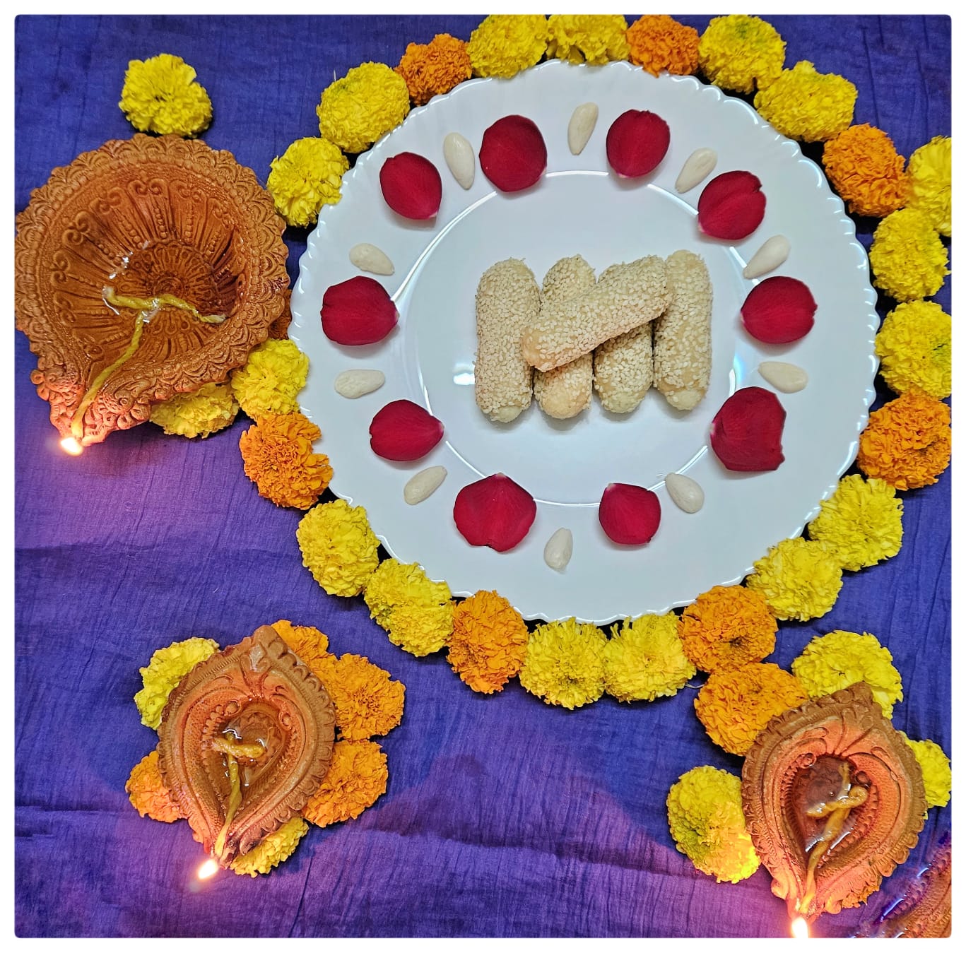 প্রনালী:- প্রথমে গ্যাসে একটা ভারী পাত্র বসিয়ে তাতে দুধটা ঢেলে ফুটতে দিতে হবে। ফুটে গেলে গ্যাসটা কমিয়ে দিতে হবে। এবার একটা পাত্রে পাতিলেবুর রস তৈরী করে নিয়ে আস্তে আস্তে দুধে মেসাতে হবে।ছানাটা কাটতে শুরু করলেই গ্যাস অফ করে দিতে হবে। এবার একটা সাদা মলমল কাপড়ে বেঁধে ৩-৪ ঘন্টা ঝুলিয়ে রাখতে হবে। এবার ঠাণ্ডা জলে ধুয়ে আরও একটু জলটা ঝরিয়ে দুভাগে ভাগ করে নিতে হবে। এবার আমন্ড কিছুক্ষণ জলে ভিজিয়ে রেখে তুলে নিয়ে খোসা ছাড়িয়ে গুঁড়িয়ে নিতে হবে। এবার একভাগ ছানা নিয়ে তাতে হাফ চিনি, আমন্ড গুঁড়ো মিশিয়ে ভালো করে ঠেসে মেখে নিতে হবে। এবার গ্যাসে কড়াই বসিয়ে পাক দিয়ে নিতে হবে। কড়াই থেকে ছেড়ে আসলে নামিয়ে নিতে হবে। নামিয়ে নিয়ে ছোট ছোট রোলের আকারে গড়ে নিতে হবে।এবার বাকি ছানা চিনি দিয়ে ভালো করে ঠেসে মেখে আলাদা ভাবে পাক দিতে হবে। এবার নামিয়ে নিয়ে কিছুটা করে নিয়ে গোল বল করে হাতে করে চ্যাপ্টা করে নিয়ে তাতে আগের আমন্ড রোলটাকে ভেতরে দিয়ে ঢেকে আবার রোলের আকারে গড়ে নিতে হবে। এবার একটা পাত্রে সাদা তিল ছড়িয়ে নিয়ে তাতে গড়িয়ে নিতে হবে। এরপর ফ্রীজে কিছুক্ষণ রেখে দিলেই সেট হয়ে গেলেই রেডি আমন্ড -তিল সন্দেশ।