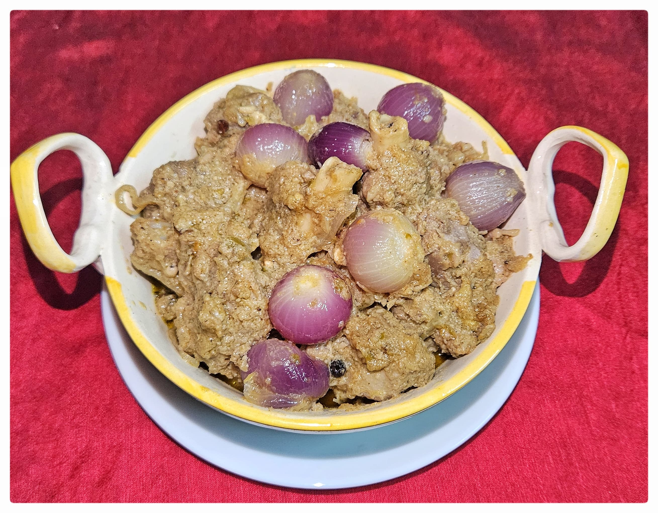 গোটা পেঁয়াজে মাংসের সাদা কোর্মা