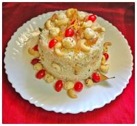 চেরি ও ভেজে রাখা জুলিয়ান করে কাটা আদা ও চেরি ছড়িয়ে , মাখনা সাজিয়ে দিলেই রেডি "মাখনা পোলাও"